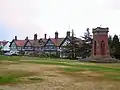 | 140–145 The Green 53°29′56″N 2°22′40″W / 53.49880°N 2.37787°W | ![]() | c. 1907 | A row of six houses in brick with applied timber framing and a clay tile roof. They have two storeys and a symmetrical front of 13 bays. There are four gables with decorative bargeboards and finials, the outer bays projecting forward, and in the centre is a dormer window. The windows are mullioned and some also have transoms.[33][69] | II |