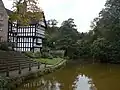 | The Aviary 53°30′12″N 2°22′28″W / 53.50342°N 2.37454°W | ![]() | 1848–49 | This was built as a hunting and fishing lodge for the 1st Earl of Ellesmere, and was greatly extended in 1995. It has a ground floor in pebbledashed brick with timber framing above, and roofs of slate, clay tiles, and stone-slate. There are two storeys and fronts of three and four bays. On the corner is a tower with jettied gables and a cupola with a weathervane.[17][52] | II |