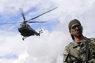 The Llochegua Clashes were a series of armed confrontations that took place on the afternoon of Friday, July 21, 2017, in the Peruvian district of Llochegua within the framework of the narcoterrorist insurgency in the VRAEM, the specific location of the attack was in the Los Angeles area, located in the highway that connects the districts of Llochegua and Pichari—when members of the Peruvian National Police were carrying the drug trafficking leader Ali Cueva Rojas. The combat originated as a response by the insurgents to the destruction of their clandestine drug production laboratories. The joint command of the Vraem forces ordered the sending of a helicopter to the conflict area to provide air support to the police forces.[1] The confrontation left nine police officers, as well as a prosecutor, injured, at the same time the drug trafficking leader who was trying to escape was captured again.[2][3][4]