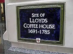 Lloyd's Coffee House, which eventually became the global insurance market Lloyd's of London, moved to Lombard Street near the General Post Office from Tower Street in 1691. The location, on the south side of the street, is now occupied at street level by a supermarket. Lloyd's is now located in Lime Street, where its current building was completed in 1986.