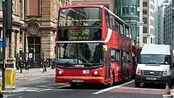 In December 1998, the introduction of Alexander ALX400 bodied DAF DB250 buses on the route made it the first double-decker route in London to solely use accessible, low-floor buses.[5][6][7]