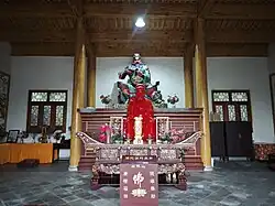 The existing main buildings include the Shanmen, Four Heavenly Kings Hall, Mahavira Hall, Hall of Guanyin, Bell tower, Drum tower, Dharma Hall, Dining Room, etc.[2]