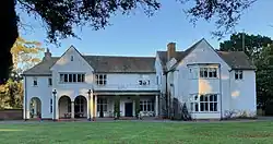 By 1921 much of the house had been remodelled with a Lutyens-inspired exterior and neo-Georgian revival interior.[2] This enlarged it to 14,000 square feet and gave it its present appearance: "a competent essay of English elegance".[1][3] With over 40 rooms, including 16 bedrooms, the house was situated amongst large formal gardens and approached via a long driveway through a grove of mature trees. New polo stables and garaging for five cars was constructed behind the house in 1923: all the cars were Daimlers until the 1950s, Chryslers afterwards.[2] The grounds contained formal flower gardens, a lily pond fed by a water race, and a sunken garden inspired by one at Hampton Court and decorated with statues representing the four seasons.[2] A nearby greenhouse built in 1923 was heated by a boiler to grow table grapes, lettuces, and flowers over winter.
