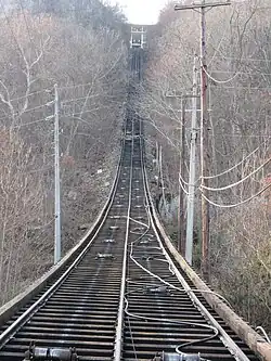 The railway is approximately one mile (1.6 km) in length (single-track except for a short two-track passing loop at the midway point, allowing operation of two cars at one time). It has a maximum grade of 72.7%, making it one of the world's steepest passenger railways.[4]