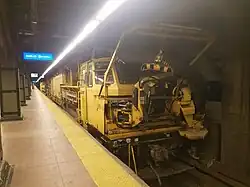 Metro-North/Loram LRV-16 Railvac Roadway Maintenance Machine at Track 25 of Grand Central Terminal, New York.