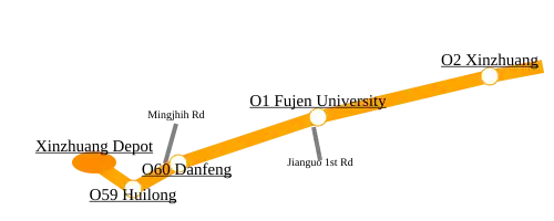 The MRT depot was originally planned to be built Yingpan (營盤) near Fu Jen Catholic University (FJU, 天主教輔仁大學), and Fu Jen University Station should be the terminal station, which is why the number of that station is O1, meaning "first station of Orange Line".