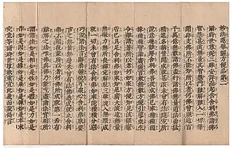 The Lotus Sūtra (Sanskrit: Saddharma Puṇḍarīka Sūtram, lit. 'Sūtra on the White Lotus of the True Dharma'; traditional Chinese: 法華經; simplified Chinese: 法华经; pinyin: Fǎhuá jīng; lit. 'Dharma Flower Sutra')[1] is one of the most influential and venerated Buddhist Mahāyāna sūtras. It is the main scripture on which the Tiantai along with its derivative schools, the Japanese Tendai and Nichiren, Korean Cheontae, and Vietnamese Thiên Thai schools of Buddhism were established. It is also influential for other East Asian Buddhist schools, such as Zen. According to the British Buddhologist Paul Williams, "For many Buddhists in East Asia since early times, the Lotus Sūtra contains the final teaching of Shakyamuni Buddha—complete and sufficient for salvation."[2] The American Buddhologist Donald S. Lopez Jr. writes that the Lotus Sūtra "is arguably the most famous of all Buddhist texts," presenting "a radical re-vision of both the Buddhist path and of the person of the Buddha."[3]