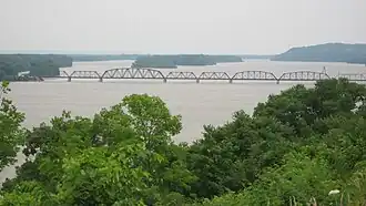 The Louisiana Railroad Bridge carries a single track rail line across the Mississippi River between Louisiana, Missouri and Pike County, Illinois, United States. Built by the Chicago and Alton Railroad, the structure is currently owned by the Canadian Pacific Kansas City following a series of sales and consolidation in the railroad industry.