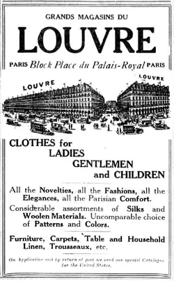 Advert for the Grands Magasins du Louvre, 1919, showing the annex across rue de Marengo