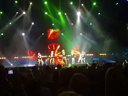 Girls Aloud performing "Love Machine" on the Out of Control Tour (2009).