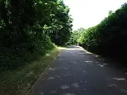Today Cumberland Road is no longer a public highway but functions as a pedestrian/cycle path into Lower Lines Park. It forms one of the park's formal entrances.[55] The road surface remains a broad tarmac avenue, but vehicular access is blocked. Original road features (kerbs, surface) largely survive, though traffic signs and double-yellow lines are vestigial. In the photo below, Cumberland Road now appears as a quiet, tree‑lined pedestrian way (looking south into the park). The path is flanked by parkland on one side and the Medway College campus on the other, in keeping with the 2008–2010 redevelopment.[54][55]