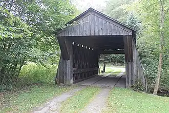 Lower Shavertown Bridge is a wooden covered bridge over Trout Creek in the town of Hancock in Delaware County, New York, USA. It was originally erected in the hamlet of Shaverton in 1877 as a crossing of Lower Beech Hill Brook, and moved to its present location at Methol in 1954. It is 32 feet long and is a wood-plank-framed, gable-roofed, single-span bridge. It is one of 29 covered bridges in New York State.[2]
