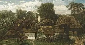 He interrupted his studies to join the January Uprising, becoming a fighter in a partisan unit commanded by Władysław Cichorski. During a skirmish with a Cossack unit near Stare Kaczkowo, his right hand was cut off by a sword and his left arm was shattered by a bullet. He was later evacuated to the rectory in Ostrów Mazowiecka, where his arm had to be amputated.[1] It was no longer possible to study forestry, so he decided to study art, beginning at the Warsaw School of Drawing with Wojciech Gerson.