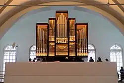 In April 2017, an organ from the German company Willi Peter from the German Church, Stockholm was transported to Petrikirche - a large instrument with 43 registers, three manuals and a pedal.[45] On 1 June of the same year, work on its installation and intonation was completed by specialists from the Rudolf von Beckerath company. The first organ concert took place on 1 July 2017.