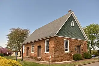 The General Assembly recognized the settlement's growth by incorporating Lynchburg as a town in 1805; it was not incorporated as a city until 1852. In between, Lynch built Lynchburg's first bridge across the James River, a toll structure that replaced his ferry in 1812. A toll turnpike to Salem, Virginia was begun in 1817. Lynch died in 1820 and was buried in the burial ground of the South River Friends Meetinghouse. Quakers later abandoned the town because of their moral opposition to slavery, which the cities economy had begun to rely upon.[10][11] Presbyterians took over the grounds of the meetinghouse in 1899, and adapted it as a church, later building a new church adjacent to the site, and restoring the Quaker meetinghouse to the buildings historical appearance.[10] The meeting house and burial ground are now preserved as a historic site.[12]