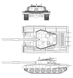 | Mass | 44.5 tonnes without reactive armour, 48.5 tonnes |