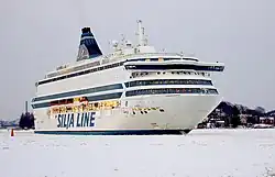 Silja Line was sold to Estonian shipping company Tallink in May 2006 - the Silja Line brand was initially kept separate, but most of its ships (including the Silja Europa) are now in Tallink livery. Silja Europa's home port was changed to Tallinn and entered Tallink's Helsinki–Tallinn service on 23 January 2013.[1] She was then sailed to Australia on a 14-month charter as an accommodation ship for the Gorgon LNG project at Barrow Island.[2] After this charter, Tallink returned Silja Europa to their Helsinki-Tallinn service on 13 March 2016.[3]