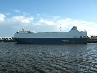 City of St. Petersburg is a roll-on/roll-off, pure car carrier cargo ship made for Nissan Motor Company Ltd, designed with a sleek semi-spherical prow to reduce wind resistance, thus saving 800 tons of fuel annually.[2]