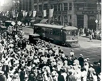 ![]() An M car at Broadway and 7th, c. 1920s | |