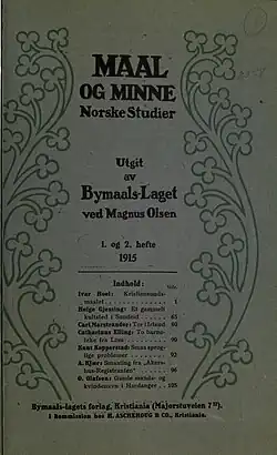 Maal og Minne ("Language and Memory") is a Norwegian academic journal of linguistics established in 1909 by Magnus Olsen. It covers research on Scandinavian languages, focusing mainly on language history and philology. It is a "level 2" journal in the Norwegian Scientific Index.[1] The current editors-in-chief are Lars S. Vikør and Jon Gunnar Jørgensen.