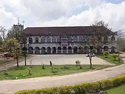 Today, the Madikeri Deputy Commissioner's Office is housed in the palace building, while St. Mark's Church houses the Madikeri Fort Museum, managed by the Karnataka State Archaeological Department.[2] The museum has exhibits which display artifacts and weaponry from the time between the fort's construction and British rule. The museum also has a large portrait of Field Marshal K. M. Cariappa. The church was constructed in 1859 by soldiers of the East India Company, with funding from the Madras Presidency.[3] The church was administered by the Madras Diocese of the Church of England, but was closed after Indian independence, and taken over by the Government of Karnataka in 1971.[4][5]