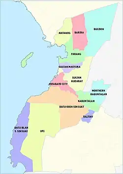 The province's largest city, Cotabato City, is administratively independent from the province but is grouped for congressional representation.