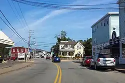 The view across the harbour is of three prominent churches: St James' Anglican; St John's Evangelical Lutheran; and Trinity United. It has become an iconic image of Nova Scotia, frequently photographed and featured on postcards and calendars.[9] The town has a number of upscale shops and restaurants which almost universally are designed to appeal to the tourist trade, and sometimes shut down during the winter months. The town also has a plastics factory.