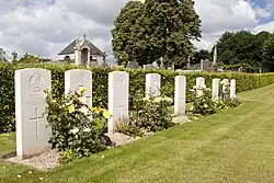 The Extension contains 126 First World War burials,[1] mainly British, but there are 3 New Zealanders and 1 Canadian. There are 2 men who in 1916 were shot at dawn for desertion.[2]