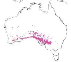 Maireana erioclada is native to Western Australia,[11] South Australia,[3] New South Wales[12] and Victoria where it grows on red-brown soils and on sandy loams on flat ground or in saline depressions.[7][12] In Victoria, the species occurs in the far north-west of the state in mallee communities, extends to the edges of salt pans.[5] The species is noted to invade disturbed areas along roadsides.[2]