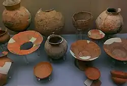 - Earthenwares from the late Yayoi period to the early Kofun period were excavated, and the Yayoi potteries and Haji pottery. According to them, the five periods are Yayoi pottery style V (Makimuku 1), Shonai pottery (Makimuku 2, Makimuku 3 and Makimuku 4) and Nururu I (Makimuku 5). However, the dates are based on the C14 dating method, which may be more than 100 years old.