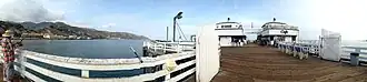 In 1934, the pier was opened to the public for pier and charter fishing.[5] During World War II, the end of the pier served as a U.S. Coast Guard daylight lookout station until a storm destroyed the pier's southernmost part; the remains of the pier were subsequently sold to William Huber's Malibu Pier Company for $50,000 with the proviso that he would construct a building for the Coast Guard to re-occupy. At war's end, Huber expanded the pier and built the twin buildings at the end of it for a bait and tackle shop plus a restaurant.[5]