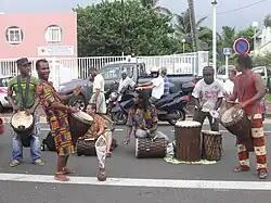 Maloya is one of the two major music genres of Réunion, usually sung in Réunion Creole, and traditionally accompanied by percussion and a musical bow.[1] Maloya is a new form that has origins in the music of African and Malagasy slaves and Indian indentured workers on the island, as has the other folk music of Réunion, séga. World music journalists and non-specialist scholars sometimes compare maloya to the American music, the blues, though they have little in common.[2] Maloya was considered such a threat to the French state that it was banned in the 1970s.[3]