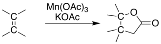 Manganese triacetate has been used as an oxidant in radical cyclizations. It can oxidize alkenes via addition of acetic acid to form lactones.[3]