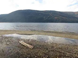 A Splats'in First Nation reserve is on the west shore at the northern end of the lake.[19]
