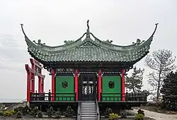 When Alva Vanderbilt divorced William in 1895, she already owned Marble House outright, having received it as her 39th birthday present.[8] Upon her remarriage in 1896 to Oliver Hazard Perry Belmont, she relocated down the street to Belmont's mansion, Belcourt. After his death, she reopened Marble House and added the Chinese Tea House on the seaside cliff, where she hosted rallies for women's suffrage.[3]