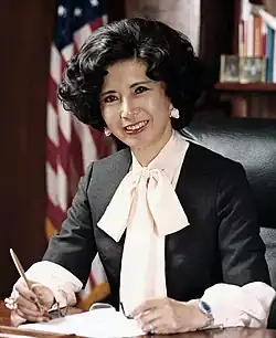 Eu was elected Secretary of State of California in 1974, becoming the first Asian American woman ever elected to a state constitutional office in the United States.[7] She remained the only woman to serve as California Secretary of State until 2006, when voters elected Debra Bowen. Eu was elected Secretary of State five times. In 1978 she won every county in the state, even heavily Republican Orange County, making her one of only five Democrats to win the county in a statewide race in the last half century. She resigned in 1994 when President Bill Clinton nominated her for an ambassadorship.[9]