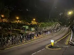 - ^ 楊婉婷; 余睿菁; 陳浩然; 魯嘉裕; 賴雯心 (2019-06-16). "【逃犯條例】連儂牆燭光悼念墮斃男 遊行人龍傳遞白花致意". HK01 (in Chinese (Hong Kong)). Hong Kong. Archived from the original on 2019-06-16.