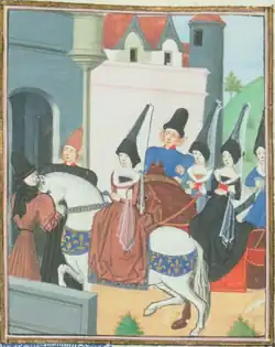 Margaret and Louis' marriage shows both the nature of medieval royal diplomacy and the precarious position of the French monarchy. After a papal dispensation was granted due to the age of the bridge and groom,[3] the marriage took place 25 June 1436 in the afternoon in the chapel of the castle of Tours.[4][5] It was presided over by the Archbishop of Reims. By the standards of the time, it was a very plain wedding.[3] Louis, nearly thirteen, looked clearly more mature than his bride. Margaret looked like a beautiful "doll", perhaps because she was treated as such by her in-laws.[3] Charles wore "grey riding pants" and "did not even bother to remove his spurs".[3] The Scottish guests were quickly hustled out after the wedding reception. This was seen as something of a scandal by the Scots. King Charles' attire and the speed with which the guests were hustled out was considered an insult to Scotland, which was an important ally in France's war with the English. However, this spoke to the impoverished nature of the French court at this time. They simply could not afford an extravagant ceremony or to host their Scottish guests for any longer than they did.[6]