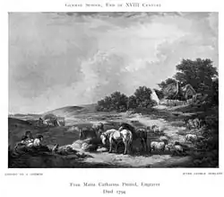 Prestel's career in London was quite successful and by the time of her death in 1794, she had produced more than seventy three engraving plates after works by German, Italian, and Dutch artists. She was celebrated for her large aquatint landscape prints, through which she skillfully replicated subtle details of romanticized landscape paintings.[1] Prestel died in Greater London.