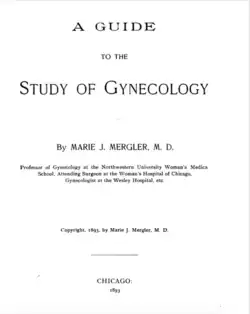 Marie J. Mergler (May 18, 1851 – May 18, 1901) was a 19th-century German-American physician, surgeon, and medical writer. She opened a general practice in Chicago in 1881, before specializing in obstetrics and gynaecology. She became a skilled gynecological surgeon, and in this field stood among those at the head of her profession in what was then considered to be the northwestern United States.[1] She served her alma mater as lecturer, professor, secretary and Dean. She held several hospital positions as consultant or on the attending staff.[2]