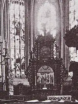 The bombing raids of the Second World War posed a new threat. At the initiative of the Dortmund museum directors Rolf Fritz (Museum of Art and Cultural History) and Leonie Reygers (Museum am Ostwall), the panels were secured in the depot of the German museums at Langenau Castle in Rhineland-Palatinate. According to Rinke's research, the baroque high altar was destroyed in a bombing raid between November 29, 1944 and March 12, 1945.[6] The additions from the 18th and 19th centuries, which had not been removed and were therefore not accepted as artistic achievements during the Second World War, were also lost.