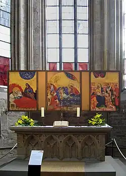 The Marienaltar by Conrad von Soest is an altar retable in the Marienkirche in Dortmund from around 1420. It is considered a masterpiece of the late Gothic period and is a good example of the courtly style. Executed as a triptych, the retable is the painter's latest known work, completed shortly before his death. It is the main altar of the Dortmund church.[1]