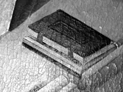 In the middle painting, behind Mary's deathbed is a table with a book whose clasps open the pages slightly. Four upside-down letters (con..d) can be seen, which can be interpreted as an abbreviation for Conrad von Soest. This signature and a lost but documented signature on the Wildungen retable make Conrad von Soest one of the first North German masters whose paintings can be attributed with certainty.[c]