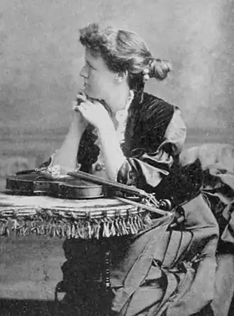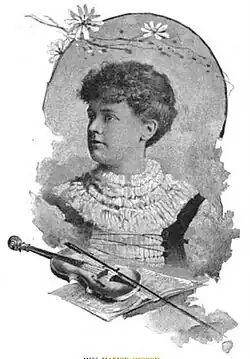 Osgood worked as a violin teacher in Boston and was one of the leading solo violinists in the US. She composed and published a number of vocal and instrumental pieces, was a scholarly writer regarding art, and met with local success as a writer of short stories in romantic fiction. Osgood organized and conducted the ladies' orchestra which bore her name. This company was established by her in 1884, was composed wholly of women artists, numbered 30 pieces, and was thoroughly organized with brass and woodwinds, strings, and tympana. This company was the first ladies' orchestra for professional work in the US;[2] it existed for about ten years.[3] Among her many published works are a "Fantaisie Caprice", an album of descriptive pieces for violin and piano, and the song "Loving and Loved".[1]