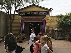 The museum was once housed in a building (which has since been razed) at Knott's Berry Farm between Jeffries Barn and the schoolhouse. A year after acquiring the Speer collection, another noted museum collection, Mott's Miniatures came to Knott's. The collection, which depicted American life from Pilgrim times to the present (with even a working two-inch-wide television set), was housed in Jeffrey's Barn. The Western Trails Museum at Knott's is now just south of the saloon in Ghost Town.[24][25][26]
