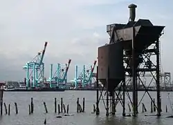 For a port to efficiently send and receive cargo, it requires infrastructure: docks, bollards, pilings, cranes, bulk cargo handling equipment, and so on – equipment and organization supporting the role of the facilities. From pier to pier these may differ, one dock handling intermodal transport needs (container-ships linked to rail by cranes); another bulk handling capabilities (such as conveyors, elevators, tanks, pumps) for loading and unloading bulk cargoes like grain, coal, or fuels. Others may be outfitted as passenger terminals or for mixed mode operations.