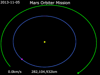 - ^ a b "Mars mission: Isro performs last orbit-raising manoeuvre". The Times of India. Press Trust of India. 16 November 2013. Retrieved 16 November 2013.