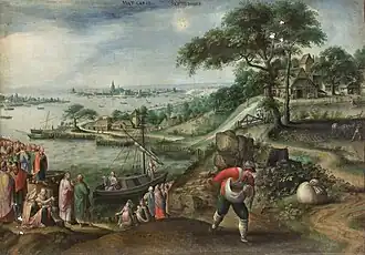 At the start of the iconoclastic fury of the Beeldenstorm in 1566 he left town with his brother Lucas. The brothers made a trip from Liège to Aachen along the Meuse (river), painting river valley views.[6] In 1566 the artist was in Aachen, where he was joined in 1570 by his brother Lucas. In Aachen, the two brothers were also joined for two years by Hans Vredeman de Vries, friend and fellow artist.[5] Hendrik van Steenwijk the Elder also resided in Aachen where he married Marten van Valckenborch's daughter.[7] Marten became a citizen of Aachen in 1573.[2]