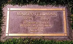 Feldman is buried in the Garden of Heritage at Forest Lawn – Hollywood Hills Cemetery, California, near the graves of Stan Laurel and Buster Keaton, two comics he idolized.[8][26]