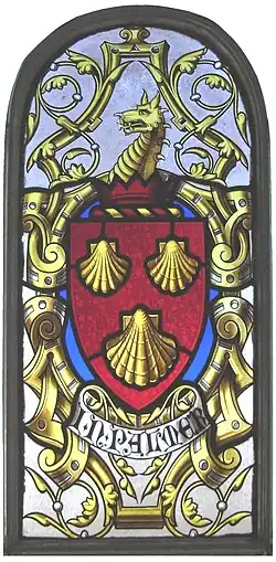 - ^ Arms of John Palmer: "Gules, three escallops", with crest: "A wyvern's head and neck couped", with inscription below: "J N Palmer". A palmer was an old term for pilgrim, and pilgrims to the shrine of St James at Compostella, Spain, distinguished themselves by wearing a scallop shell, the symbol of that saint
